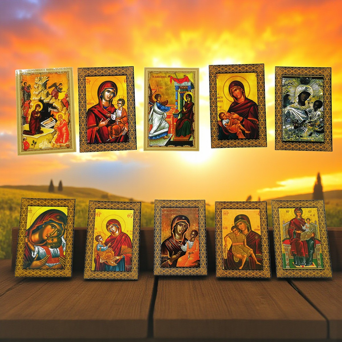 Setul de 10 calendare de buzunar crestin ortodox Vision XXI pentru anul 2026 este ideal pentru a avea mereu la indemana datele importante si sarbatorile religioase. Fiecare calendar are pe coperta o iconita crestin ortodoxa diferita, imprimata in policromie pe carton lucios, oferind un aspect elegant si traditional.